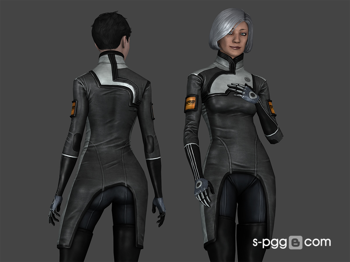 2. Внешность и одежда: броня "Аякс", логотип Цербера заметно замазан серой краской, на голове такие вот косы, ресницы очень густо накрашены